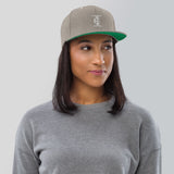 This hat is structured with a classic fit, flat brim, and full buckram. The adjustable snap closure makes it a comfortable, one-size-fits-most hat.